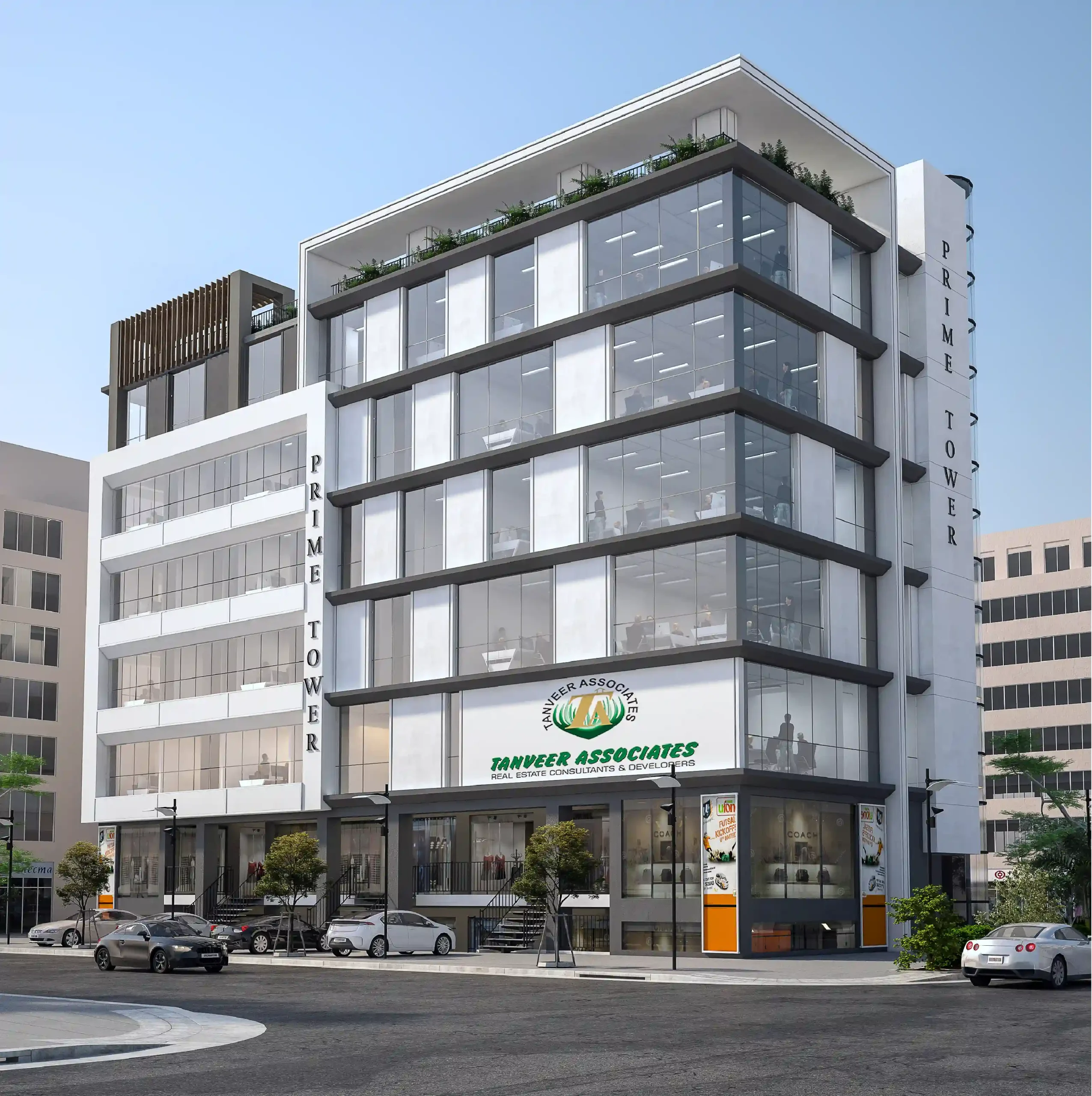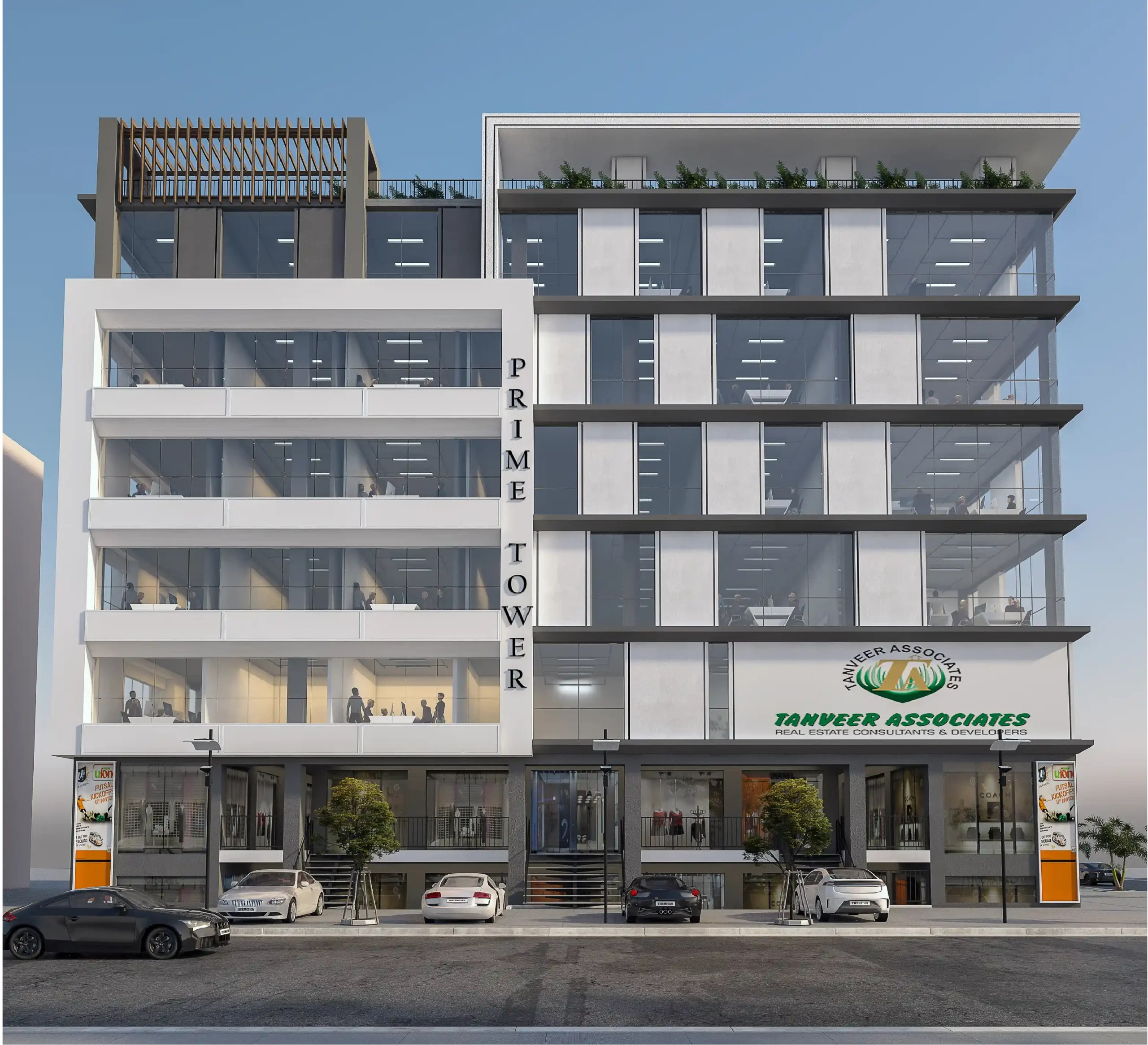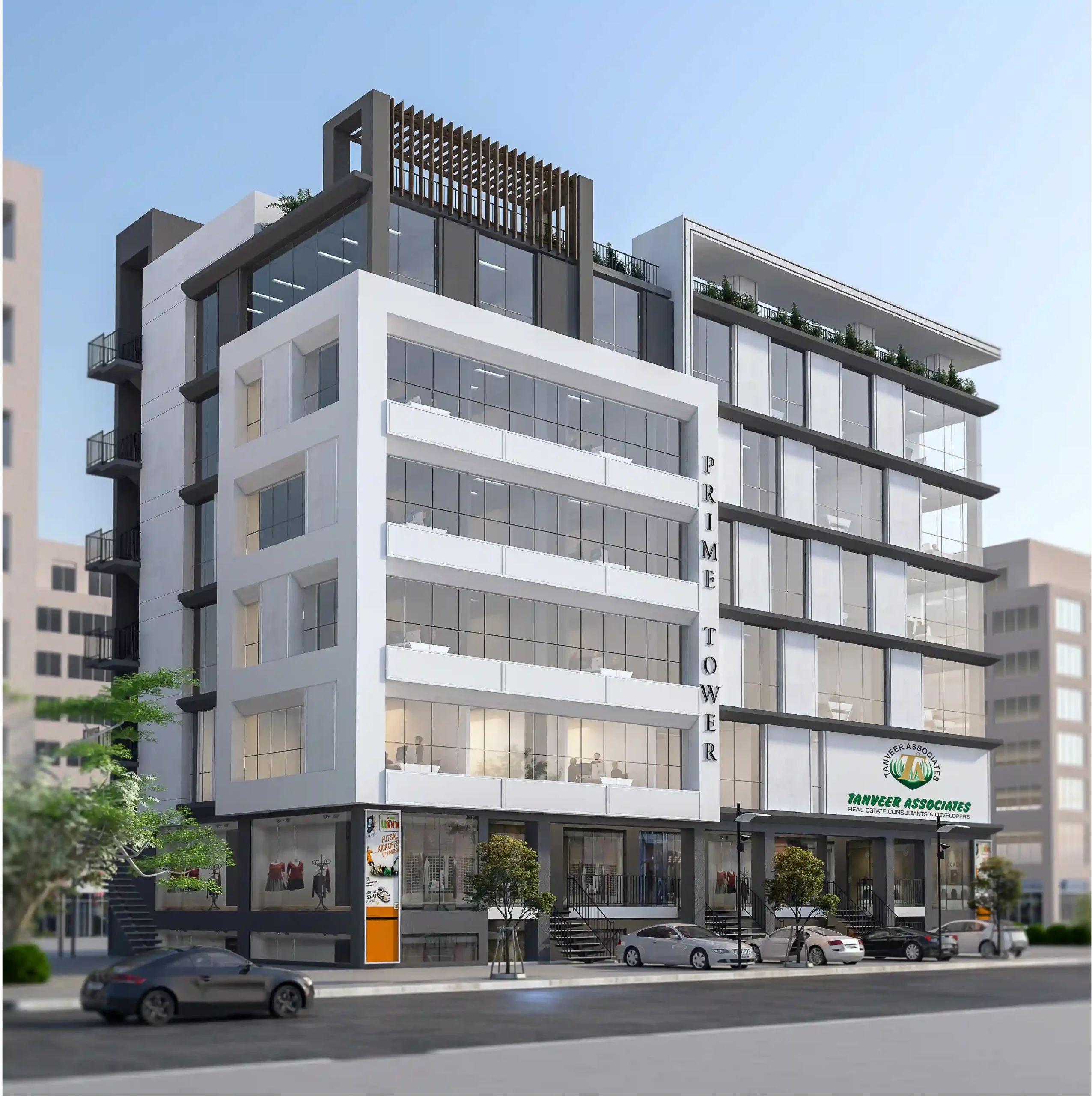 PRIME TOWER is a commercial building with Luxury Offices in Faisal Hills with the most naturally adorned landscape. It has 36 Shops & 36 Luxury Offices. The building defines itself with the modern architecture style, to enhance new architecture elements to make use of oversized glass windows to invite an abundance of natural light, wide corridors with elevator giving you a beautiful experience within a building. The building’s symmetry has given unique shape to the PRIME TOWER and features it eco-friendly and the mark of creativity. Another feature of the project is welcome Lobby for offices which provides you the luxury welcoming to your clients before coming to your office.